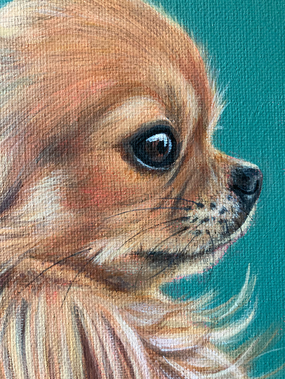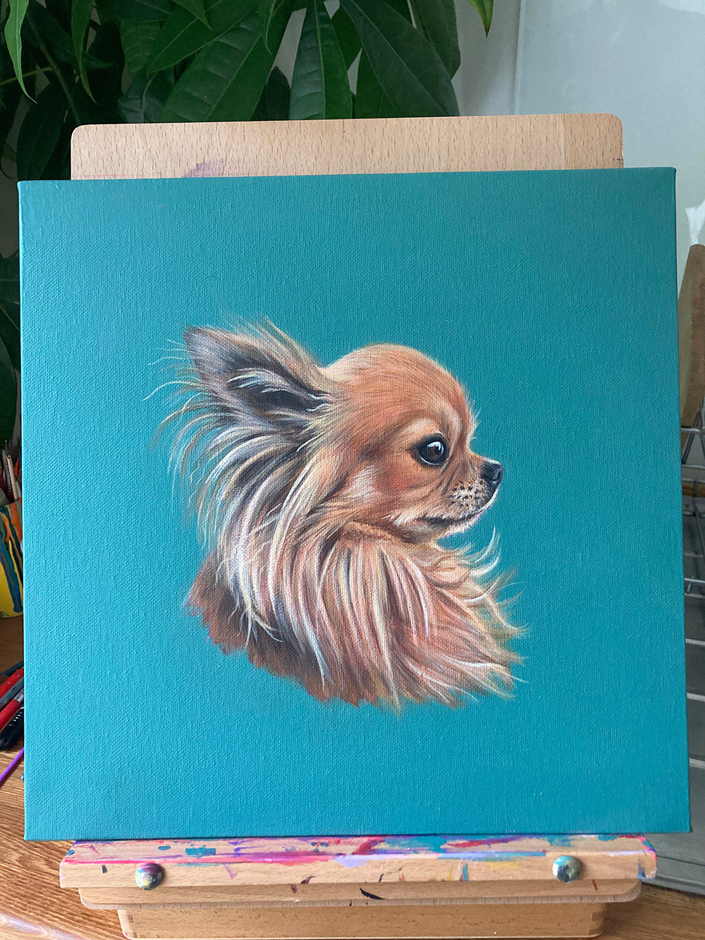 Magnificent long haired Chihuahua. 30cm x 30cm Acrylic on Canvas